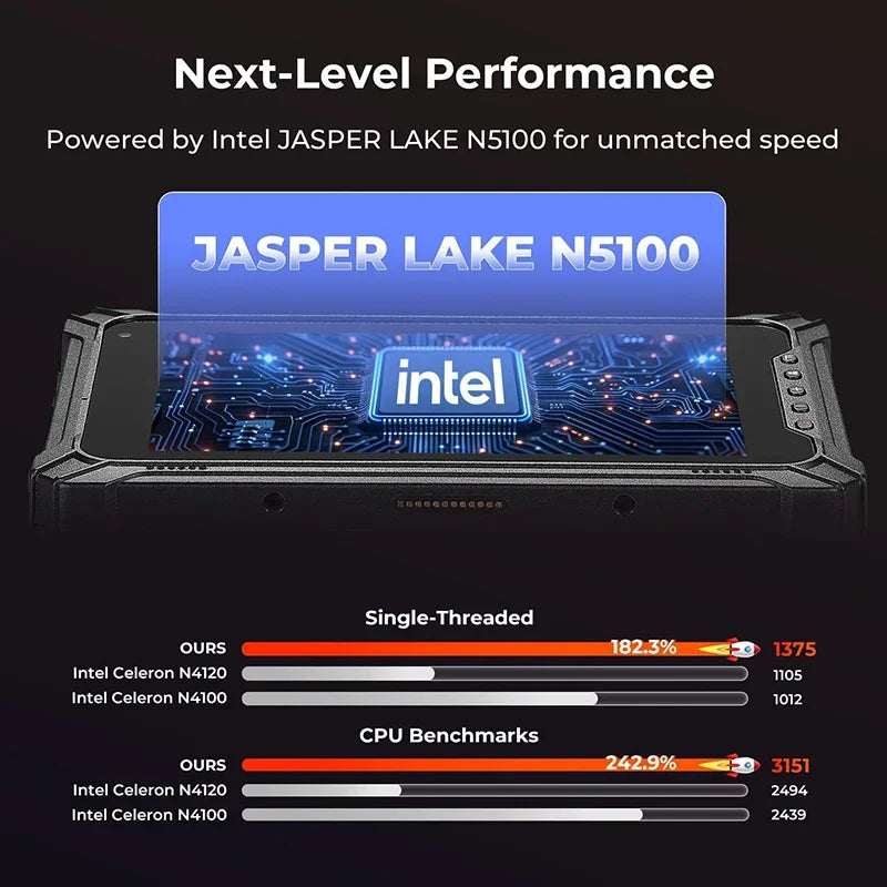 - Efficient Processor: Powered by Intel Celeron N5100 (up to 2.8GHz), outperforming common industrial tablets using N4120 or N4100 chipsets.